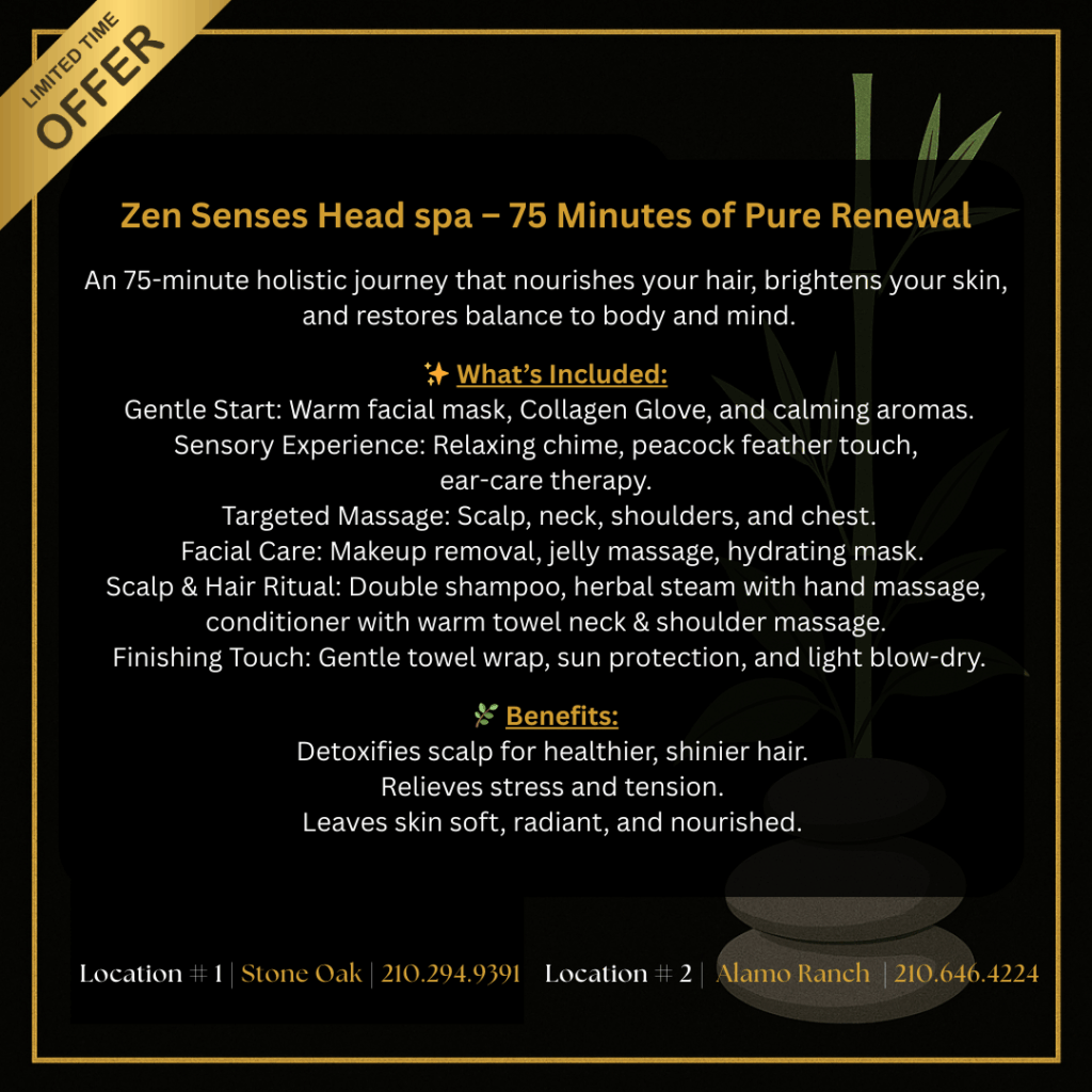 Each session includes a range of treatments such as scalp exfoliation, which gently removes buildup, and a nourishing scalp massage that promotes circulation and relaxation.
